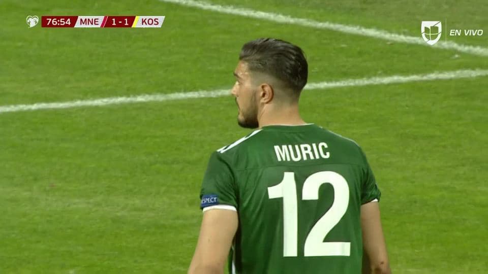 Tarjeta amarilla. El árbitro amonesta a Arijanet Muric de Kosovo
