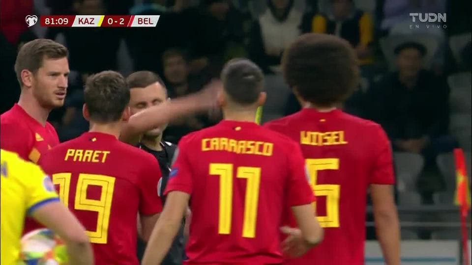 Tarjeta amarilla. El árbitro amonesta a Axel Witsel de Belgium on October 13, 2019