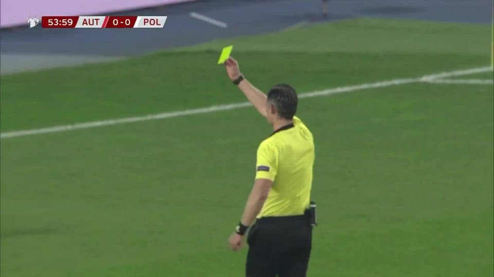Tarjeta amarilla. El árbitro amonesta a Bartosz Bereszynski de Poland