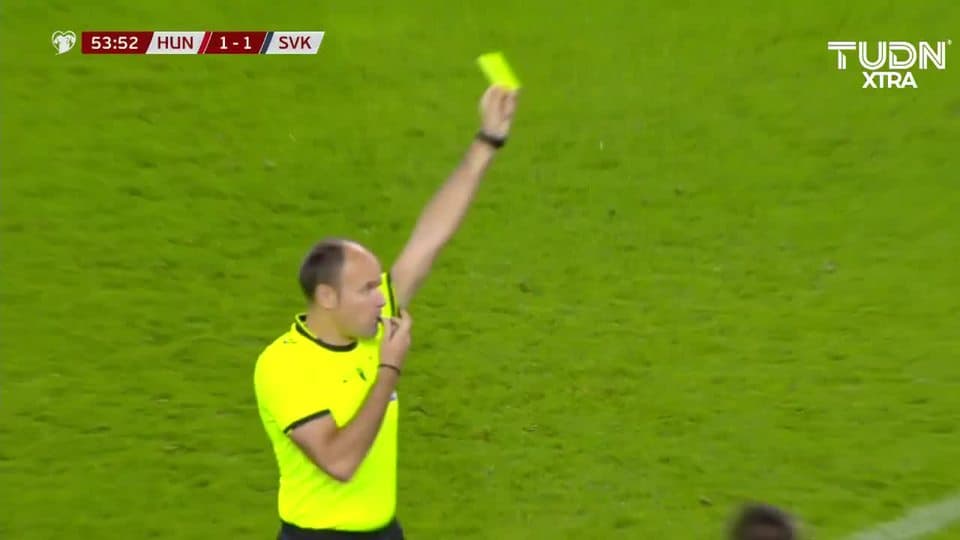 Tarjeta amarilla. El árbitro amonesta a Botond Baráth de Hungary