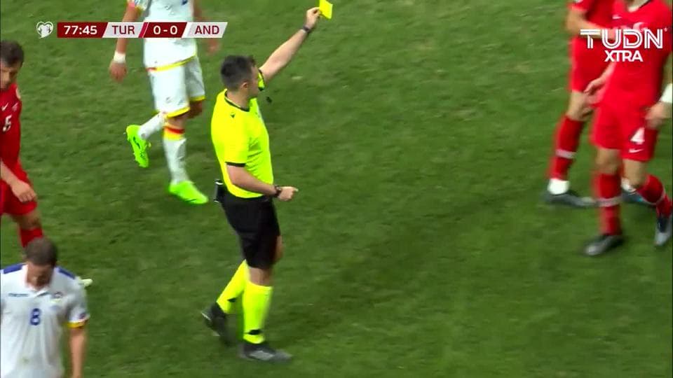 Tarjeta amarilla. El árbitro amonesta a Çaglar Söyüncü de Turkey