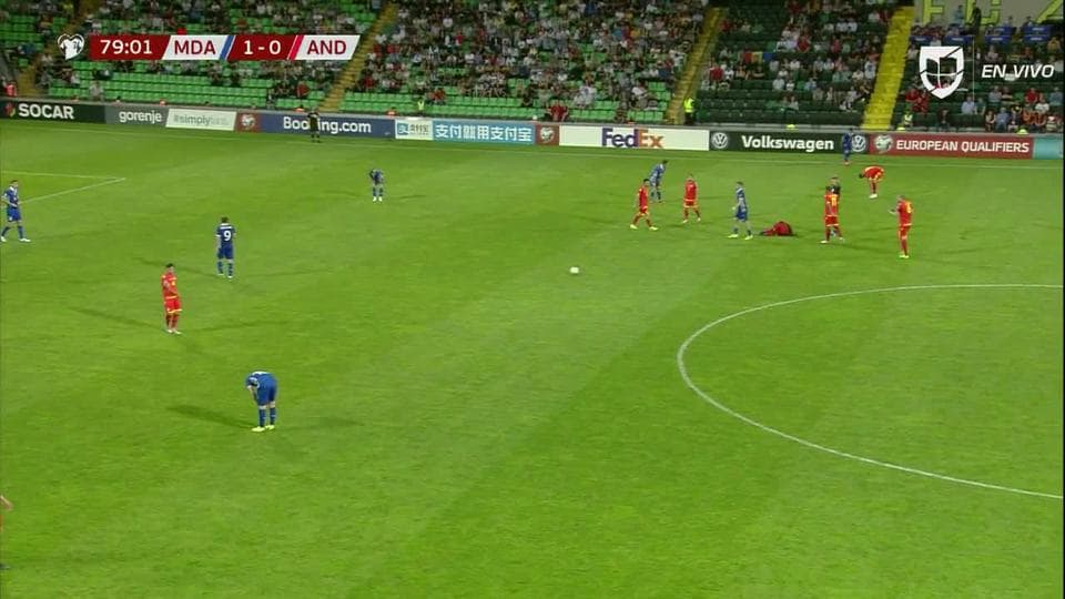 Tarjeta amarilla. El árbitro amonesta a Catalin Carp de Moldova