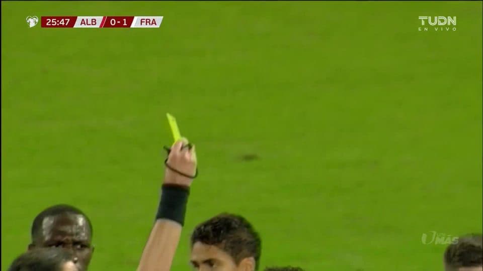 Tarjeta amarilla. El árbitro amonesta a Clément Lenglet de France
