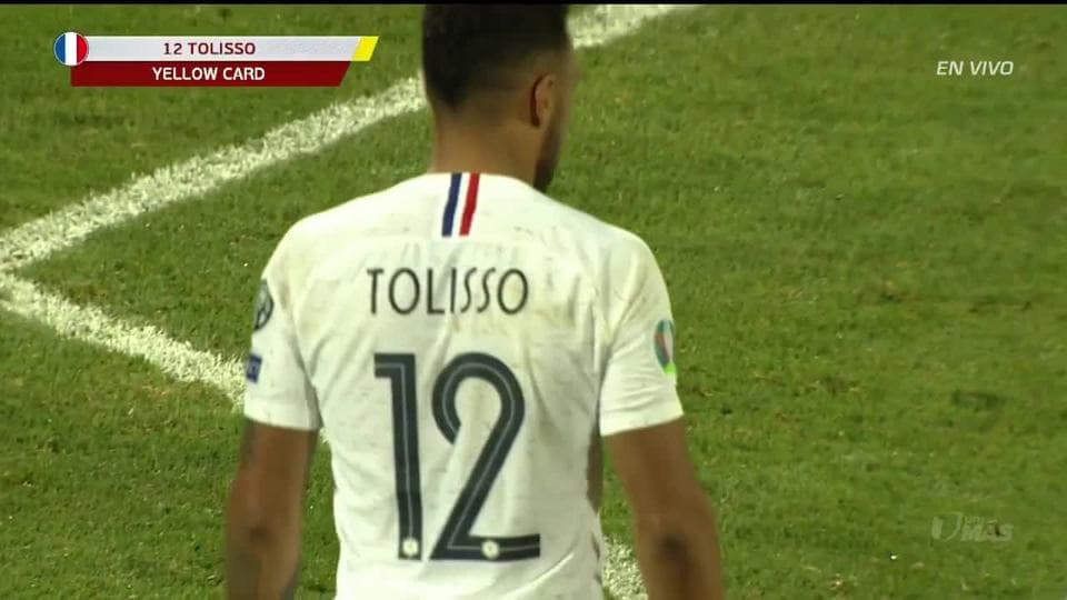 Tarjeta amarilla. El árbitro amonesta a Corentin Tolisso de France