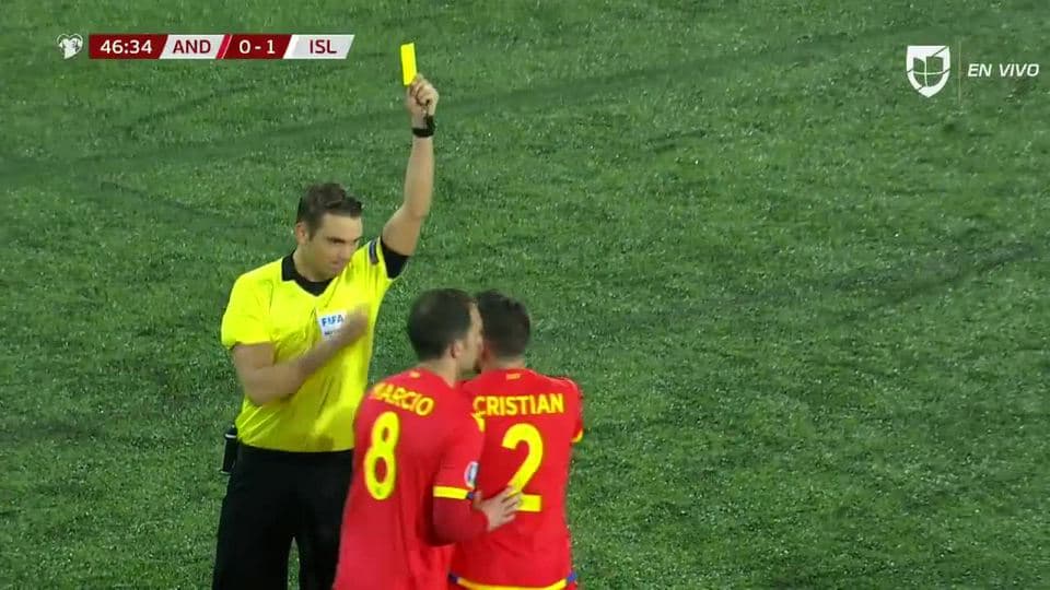 Tarjeta amarilla. El árbitro amonesta a Cristian Martínez de Andorra