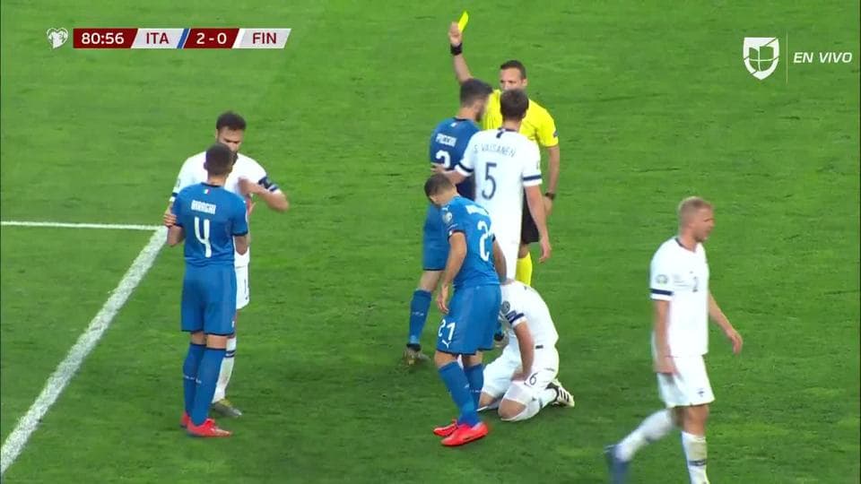 Tarjeta amarilla. El árbitro amonesta a Cristiano Piccini de Italy