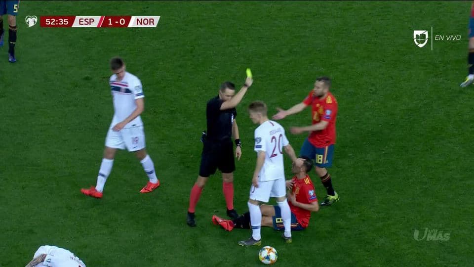 Tarjeta amarilla. El árbitro amonesta a Dani Ceballos de Spain