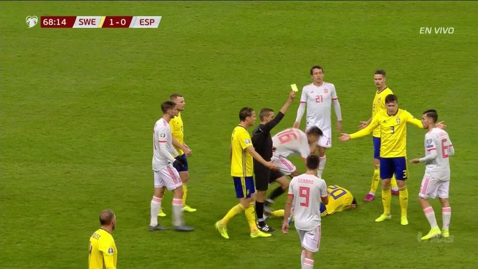 Tarjeta amarilla. El árbitro amonesta a Dani Ceballos de Spain