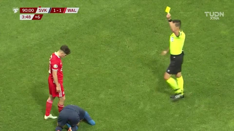 Tarjeta amarilla. El árbitro amonesta a Daniel James de Wales