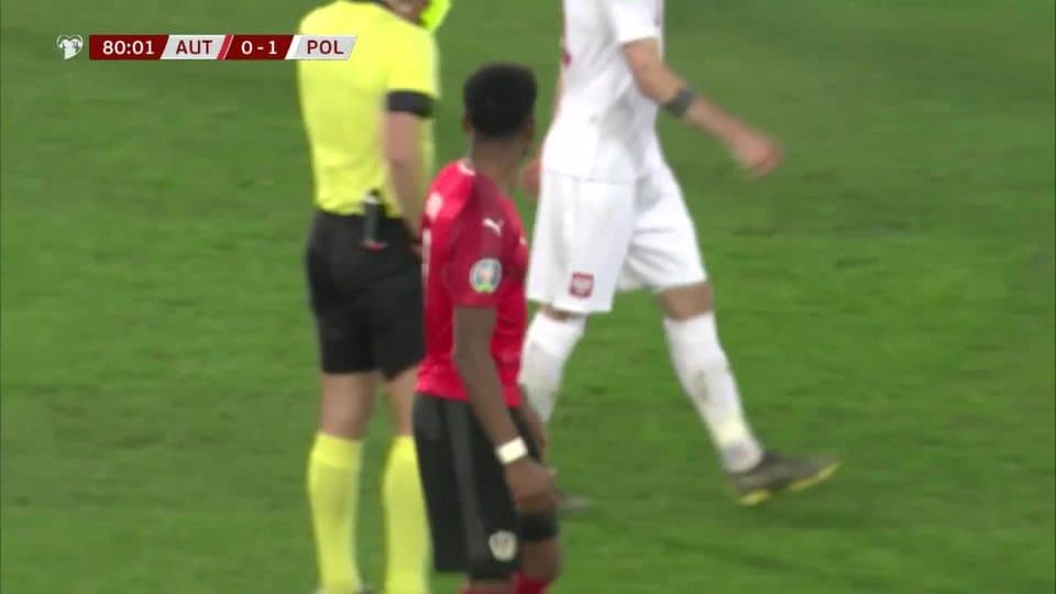 Tarjeta amarilla. El árbitro amonesta a David Alaba de Austria