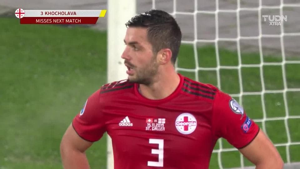 Tarjeta amarilla. El árbitro amonesta a Davit Khocholava de Georgia