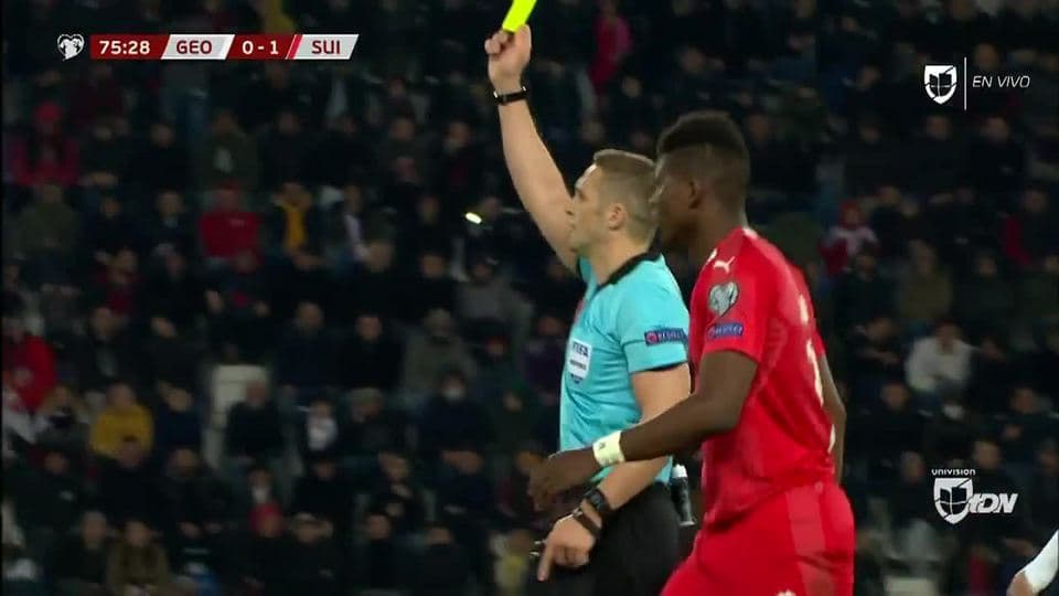 Tarjeta amarilla. El árbitro amonesta a Davit Khotcholava de Georgia