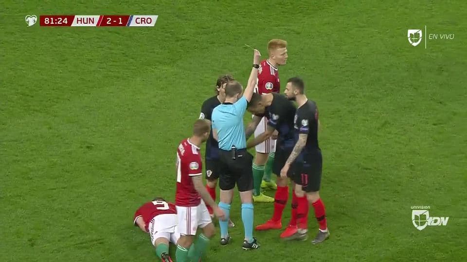 Tarjeta amarilla. El árbitro amonesta a Dejan Lovren de Croatia on March 24, 2019