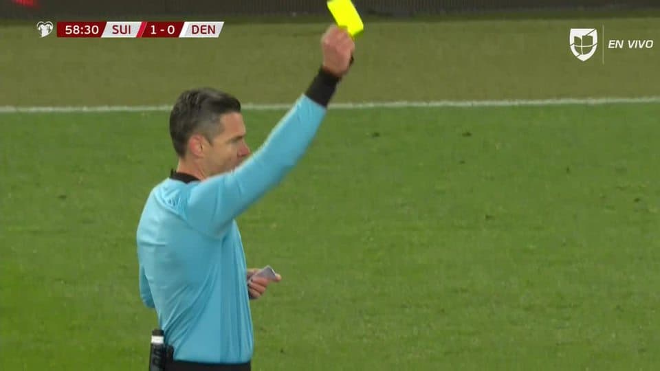 Tarjeta amarilla. El árbitro amonesta a Denis Zakaria de Switzerland