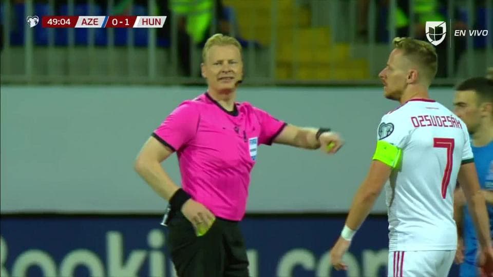 Tarjeta amarilla. El árbitro amonesta a Dimitrij Nazarov de Azerbaijan on June 8, 2019