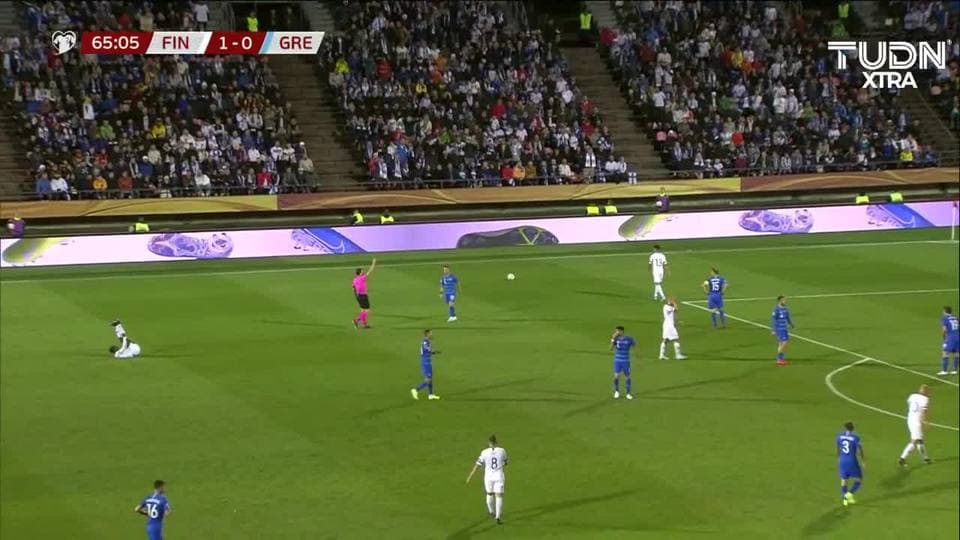 Tarjeta amarilla. El árbitro amonesta a Dimitrios Pelkas de Greece
