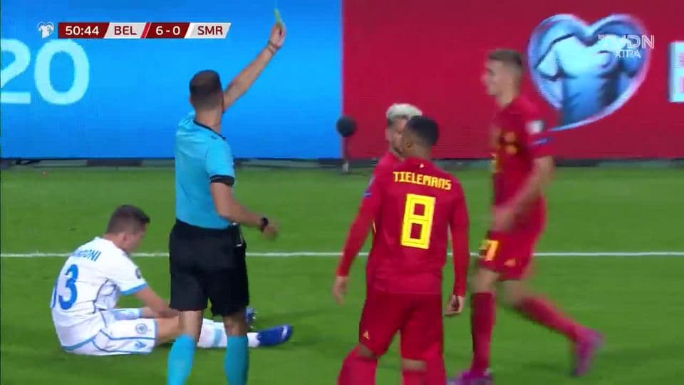 Tarjeta amarilla. El árbitro amonesta a Dries Mertens de Belgium on October 10, 2019