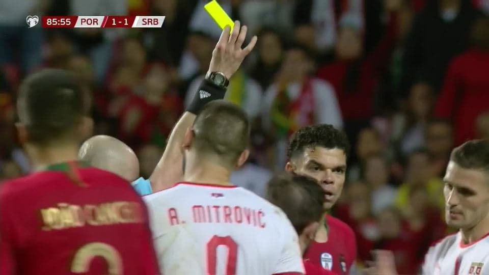 Tarjeta amarilla. El árbitro amonesta a Dusan Tadic de Serbia on March 25, 2019