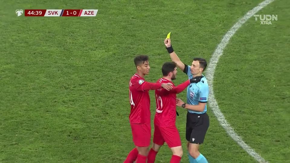 Tarjeta amarilla. El árbitro amonesta a Eddy Silvestre de Azerbaijan