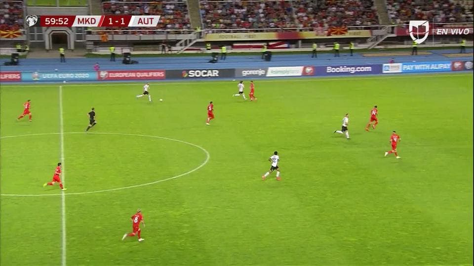 Tarjeta amarilla. El árbitro amonesta a Egzon Bejtulai de North Macedonia