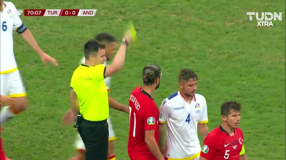 Tarjeta amarilla. El árbitro amonesta a Emre de Turkey on September 7, 2019