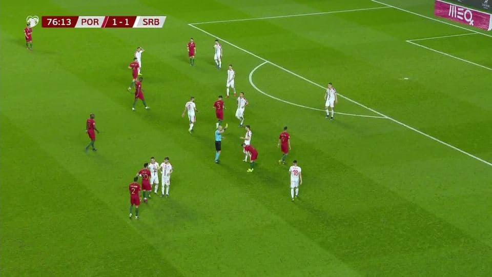 Tarjeta amarilla. El árbitro amonesta a Filip Mladenovic de Serbia on March 25, 2019