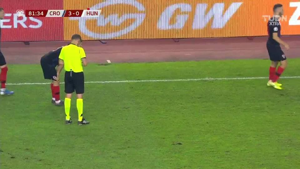 Tarjeta amarilla. El árbitro amonesta a Gergo Lovrencsics de Hungary