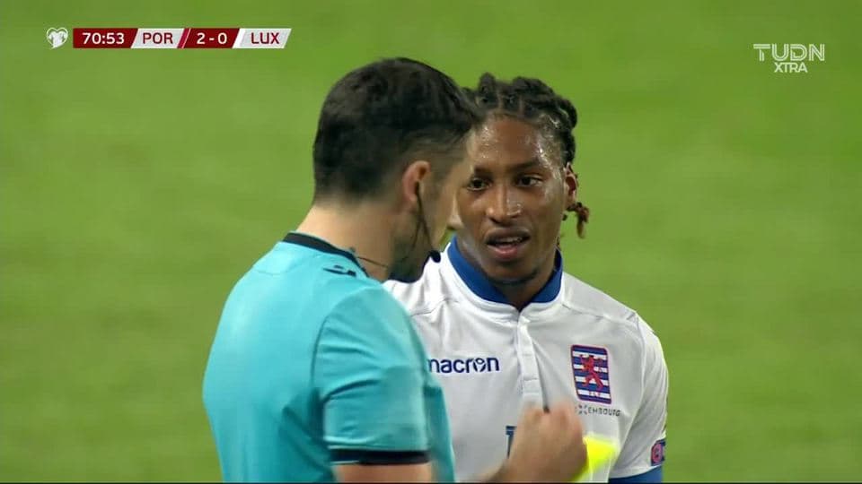 Tarjeta amarilla. El árbitro amonesta a Gerson Rodrigues de Luxembourg