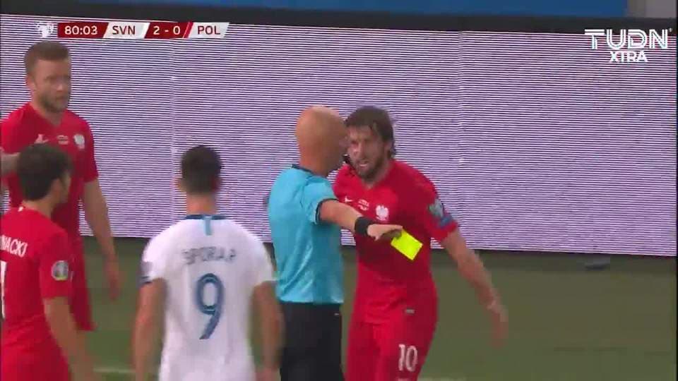 Tarjeta amarilla. El árbitro amonesta a Grzegorz Krychowiak de Poland