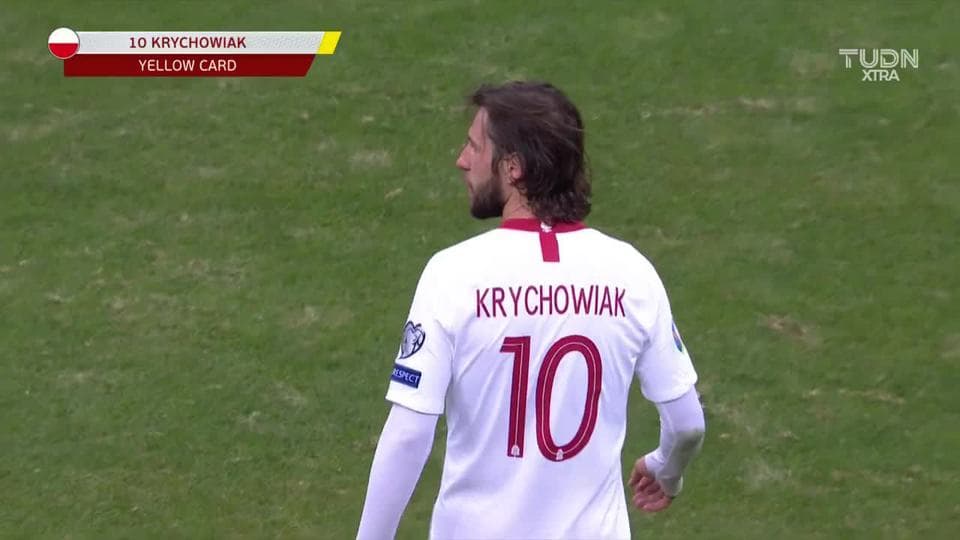 Tarjeta amarilla. El árbitro amonesta a Grzegorz Krychowiak de Poland