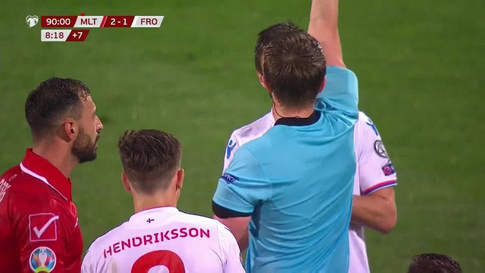 Tarjeta amarilla. El árbitro amonesta a Hallur Hansson de Faroe Islands