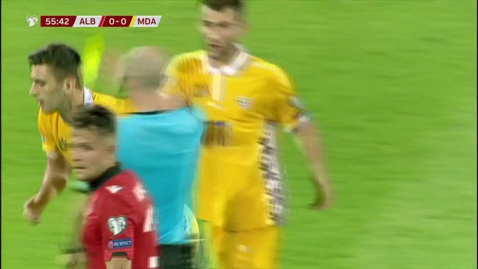 Tarjeta amarilla. El árbitro amonesta a Igor Armas de Moldova on June 11, 2019