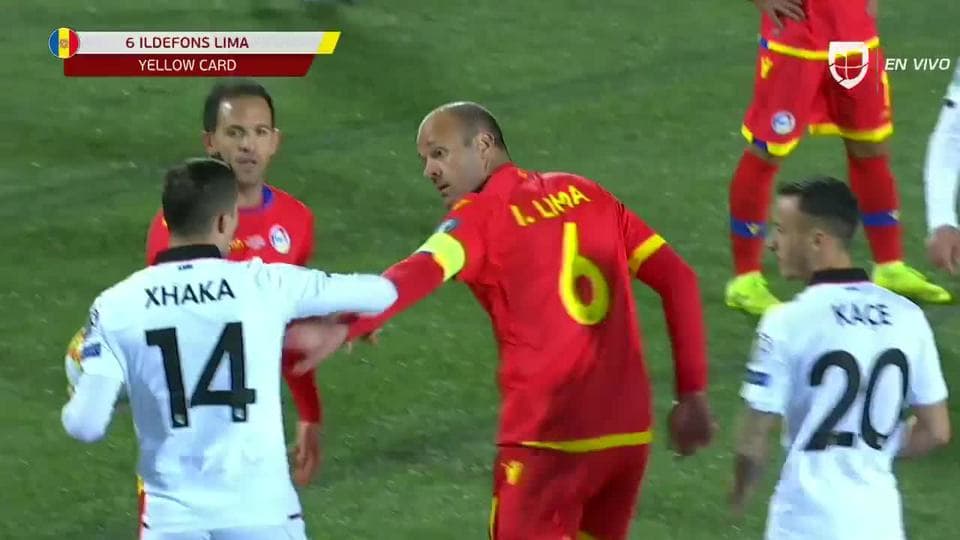 Tarjeta amarilla. El árbitro amonesta a Ildefons Lima de Andorra