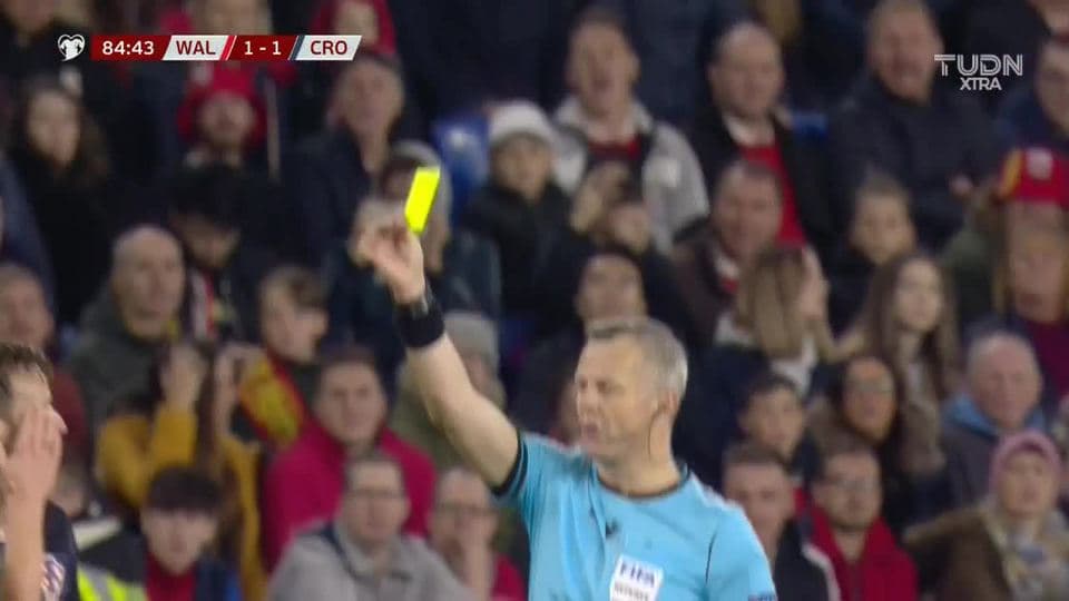 Tarjeta amarilla. El árbitro amonesta a Ivan Rakitic de Croatia on October 13, 2019