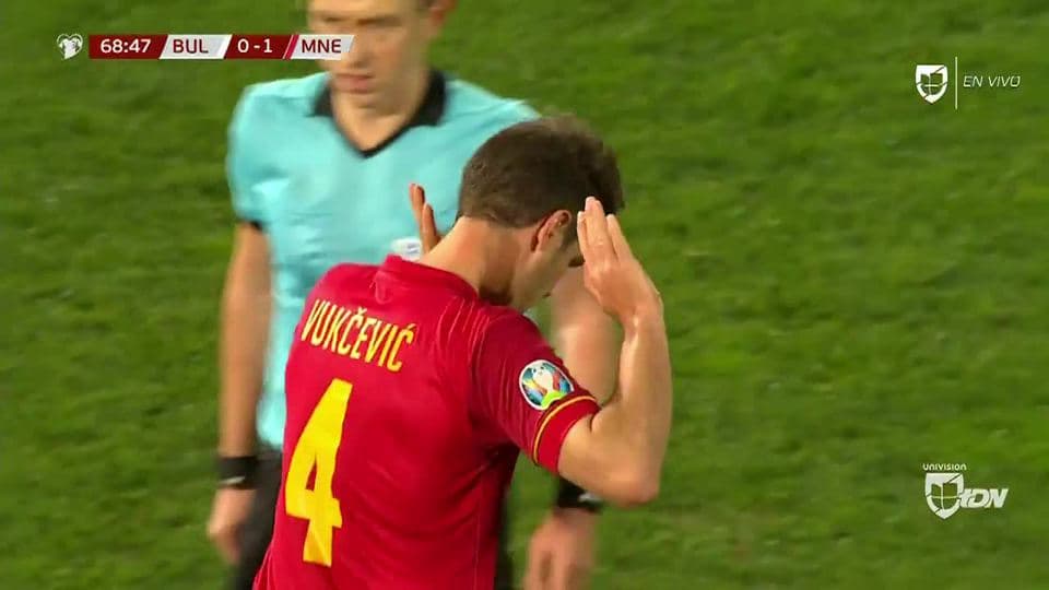 Tarjeta amarilla. El árbitro amonesta a Ivaylo Chochev de Bulgaria on March 22, 2019
