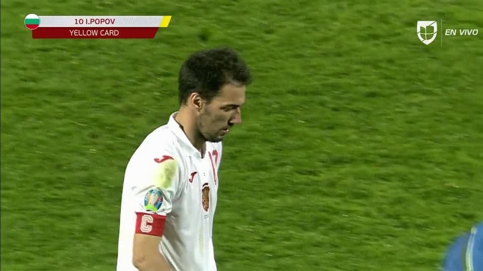 Tarjeta amarilla. El árbitro amonesta a Ivelin Popov de Bulgaria on March 25, 2019