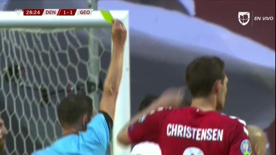 Tarjeta amarilla. El árbitro amonesta a Jaba Kankava de Georgia