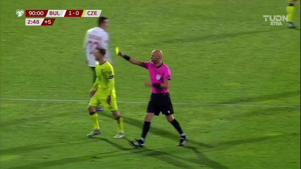 Tarjeta amarilla. El árbitro amonesta a Jakub Jankto de Czech Republic