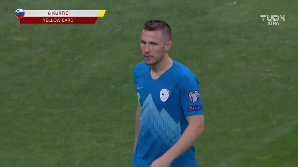 Tarjeta amarilla. El árbitro amonesta a Jasmin Kurtic de Slovenia