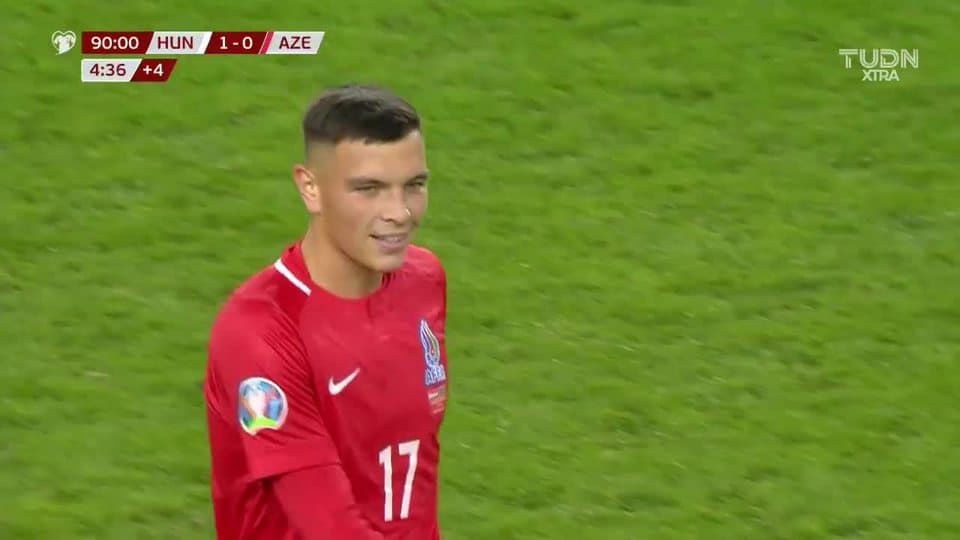 Tarjeta amarilla. El árbitro amonesta a Javid Huseynov de Azerbaijan