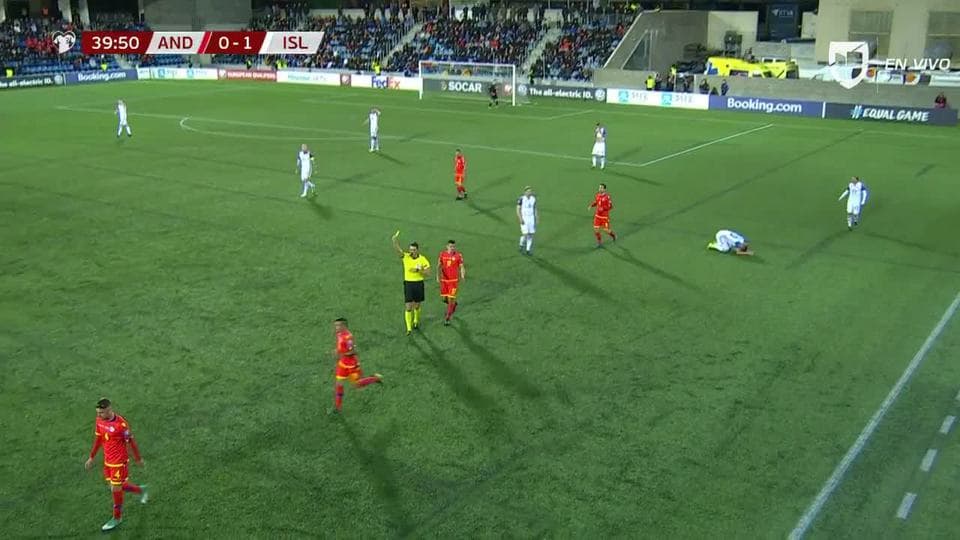 Tarjeta amarilla. El árbitro amonesta a Jesús Rubio de Andorra on March 22, 2019
