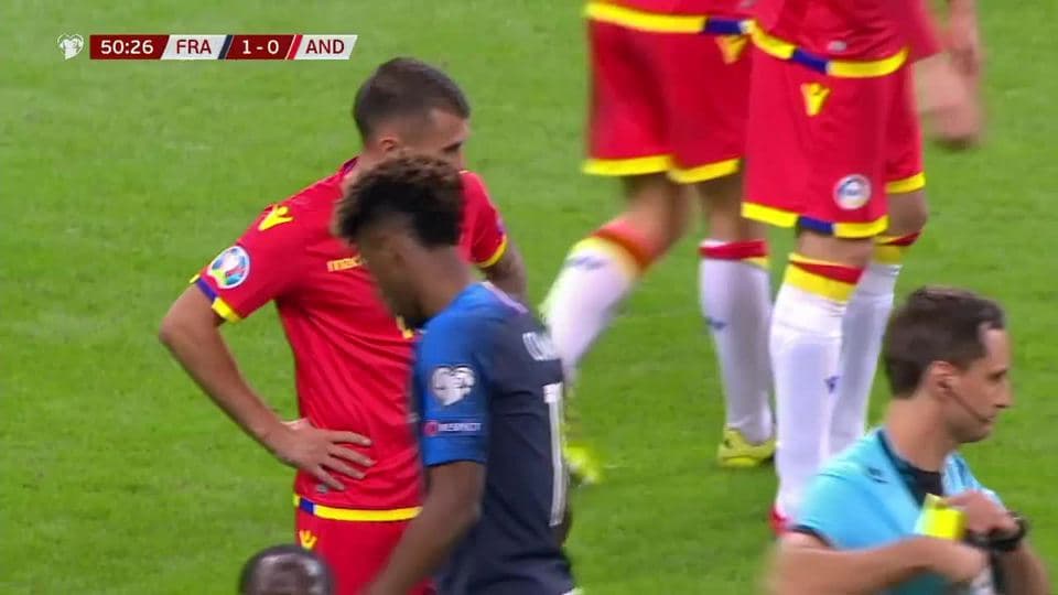 Tarjeta amarilla. El árbitro amonesta a Jesús Rubio de Andorra on September 10, 2019