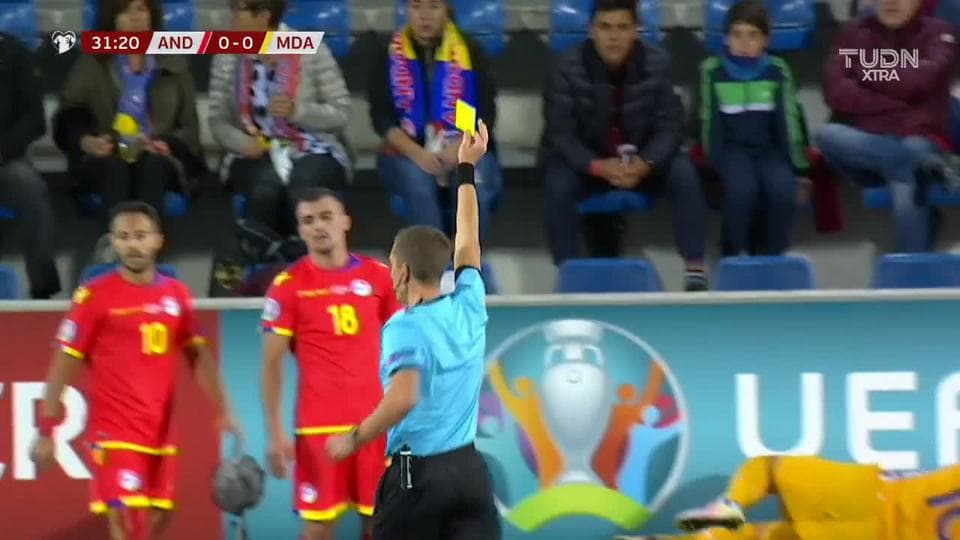 Tarjeta amarilla. El árbitro amonesta a Jesús Rubio de Andorra on October 11, 2019