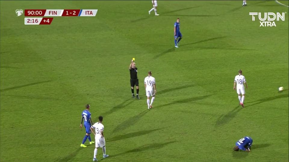 Tarjeta amarilla. El árbitro amonesta a Joni Kauko de Finland on September 8, 2019
