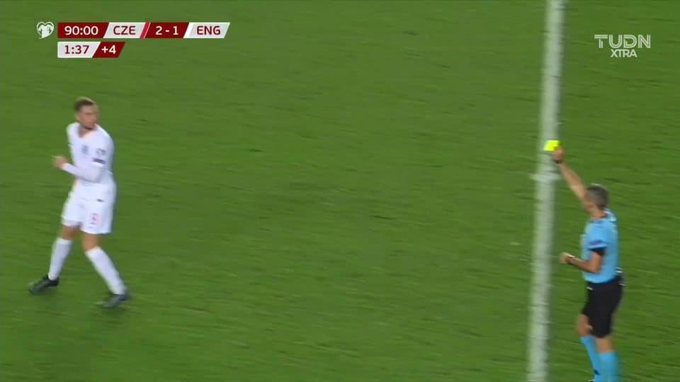 Tarjeta amarilla. El árbitro amonesta a Jordan Henderson de England