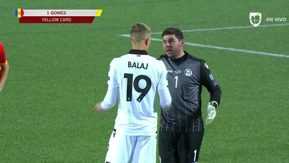 Tarjeta amarilla. El árbitro amonesta a Josep Gomes de Andorra on March 25, 2019