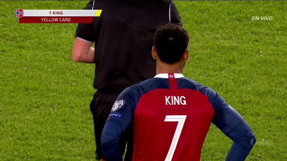 Tarjeta amarilla. El árbitro amonesta a Joshua King de Norway