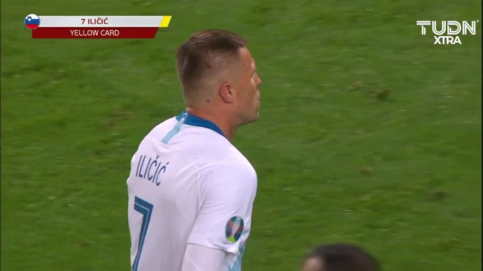 Tarjeta amarilla. El árbitro amonesta a Josip Ilicic de Slovenia on September 9, 2019