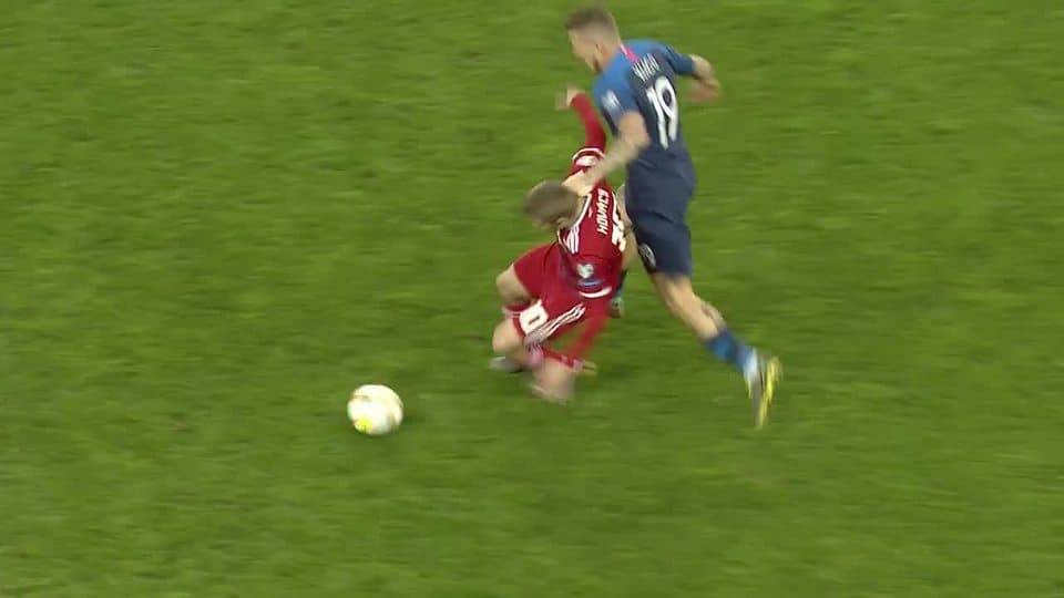Tarjeta amarilla. El árbitro amonesta a Juraj Kucka de Slovakia on March 21, 2019
