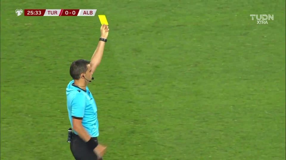 Tarjeta amarilla. El árbitro amonesta a Kaan Ayhan de Turkey
